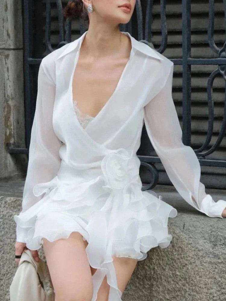 Increase quantity for Appliques Ruffles Draped Long Sleeve Dress