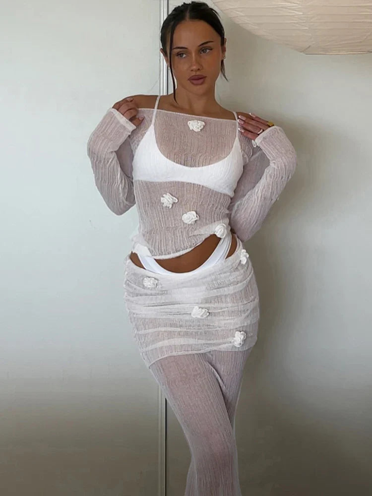 Decrease quantity for Appliques Sheer Full Sleeves Top and Long Skirt Suit