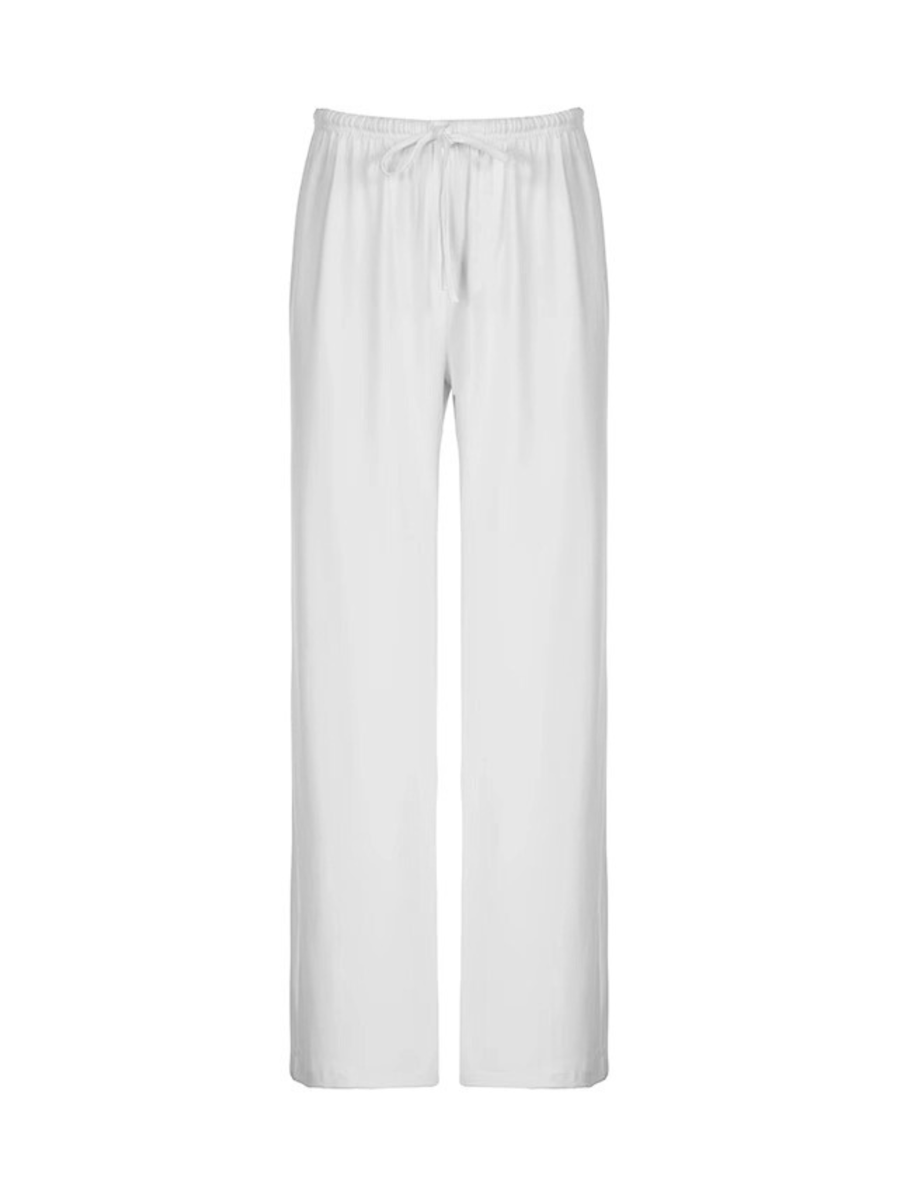 Effortlessly chic and endlessly soft. these flowy white lounge pants are designed for carefree comfort and coastal daydreams. With a wide-leg silhouette and an elasticated drawstring waist. they offer both ease and elegance—whether you're walking barefoot by the shore or unwinding indoors. The lightweight. silky fabric drapes beautifully on the body. moving with every step like a breeze.