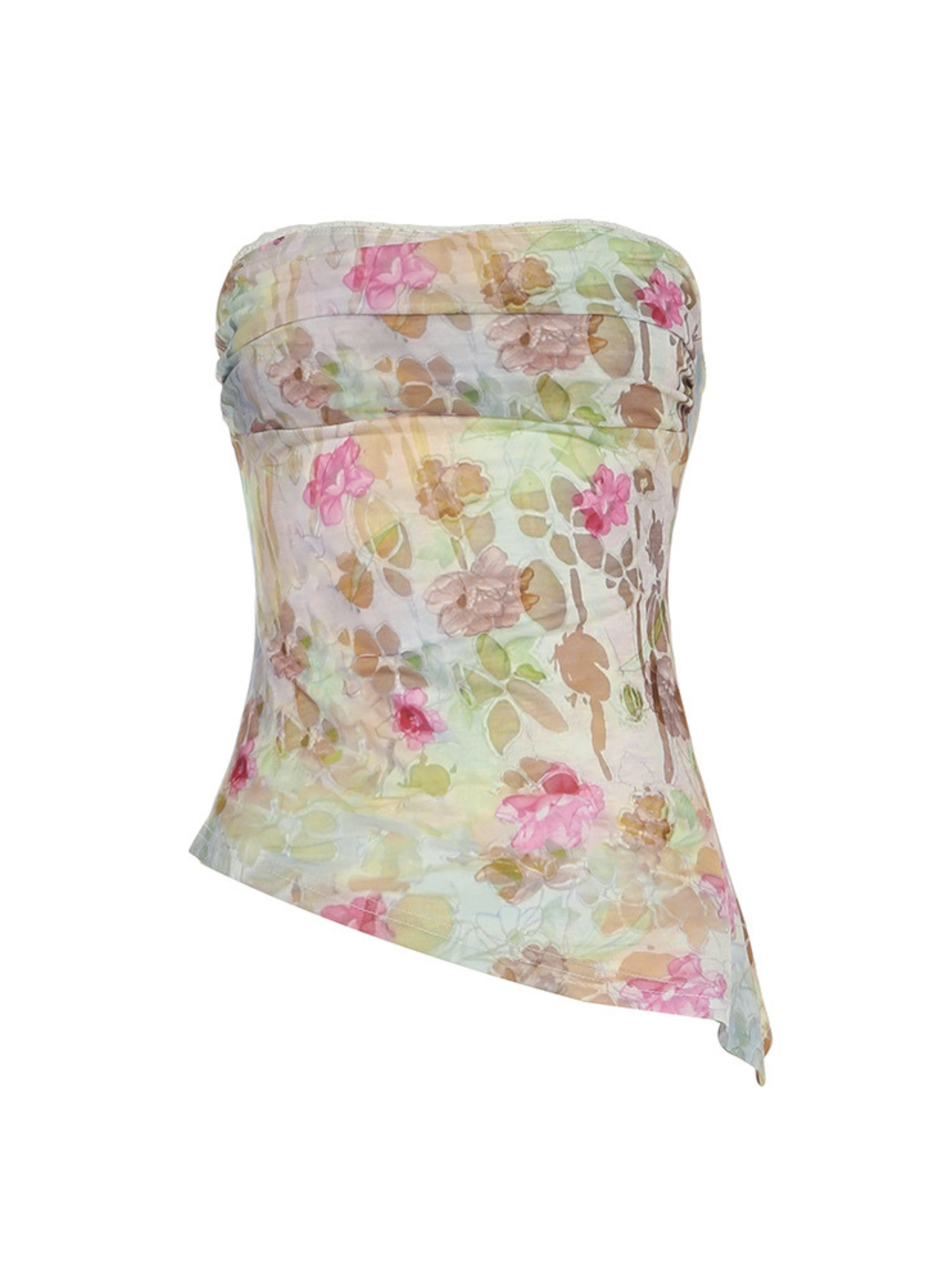 Introducing the Kaily Mesh Floral Strapless Top from Vivuki' Spring-Summer Collection! Made from lightweight mesh fabric with a beautiful floral print. this top features soft ruched details. a strapless tube design. and an asymmetrical hem. Perfect for layering over bralettes or bikinis. it's both stylish and breathable.