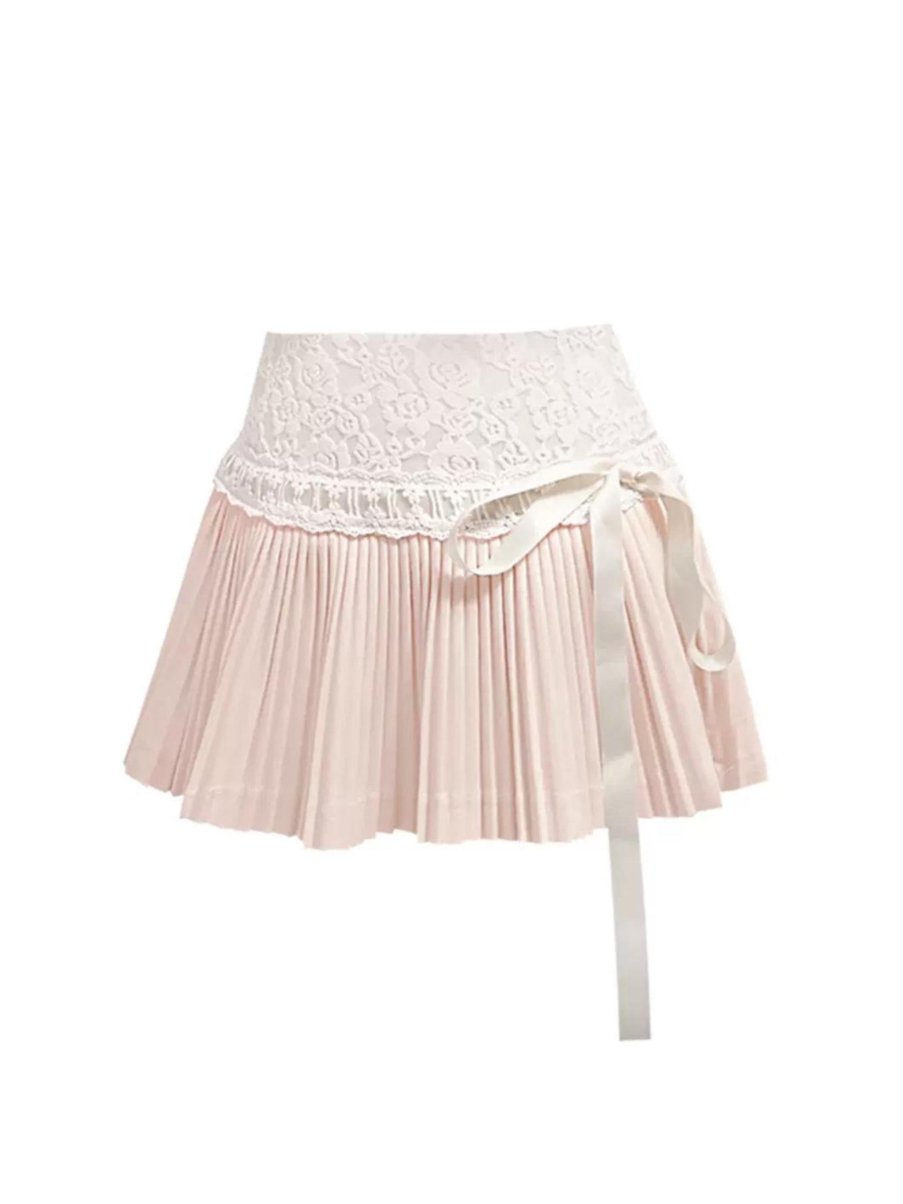 Lanie is a delightful blend of femininity and elegance. designed to make you feel effortlessly graceful. This mini skirt features delicate lace detailing at the waist. adding a touch of romance to the classic pleated silhouette. The soft blush pink color. paired with the satin ribbon accent. creates a charming and sophisticated look that's perfect for any occasion. Whether you're dressing up for a special event or adding a sweet twist to your everyday style. the Lanie Pleated Lace Mini Skirt is a must-have in your wardrobe.