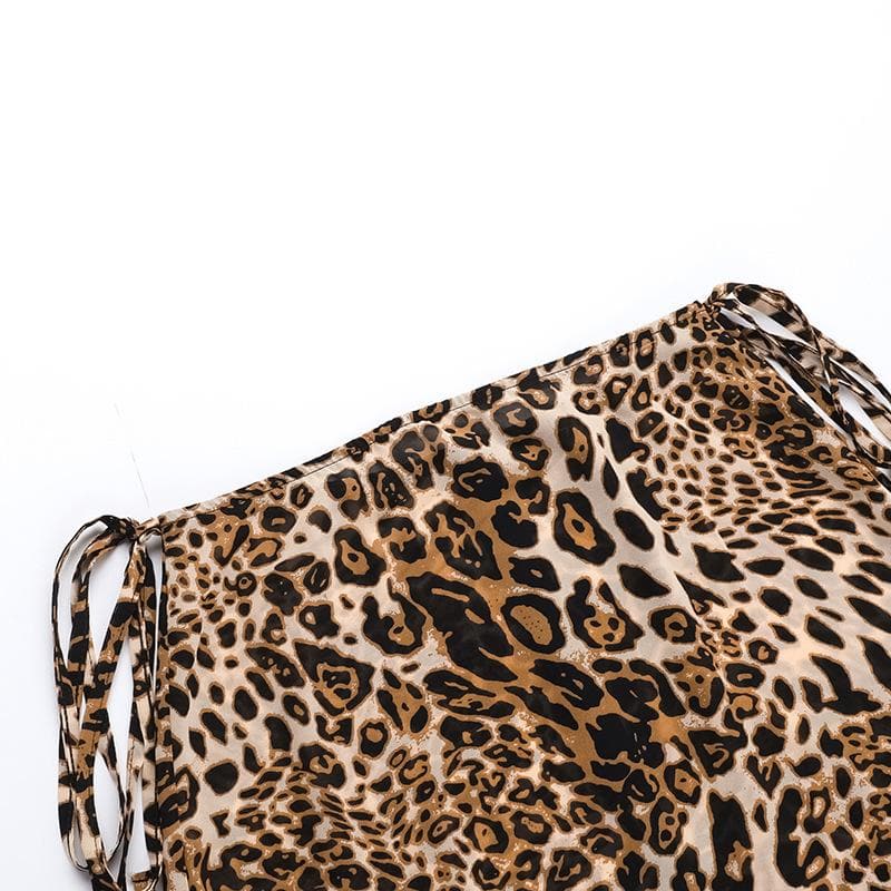 Decrease quantity for Leopard print knotted self tie tube maxi skirt set