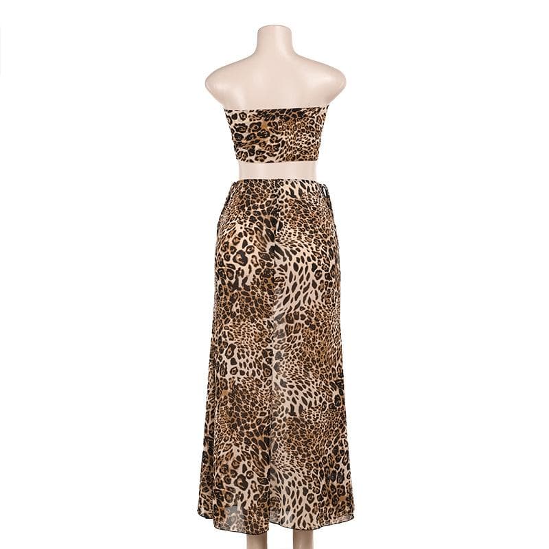 Increase quantity for Leopard print knotted self tie tube maxi skirt set