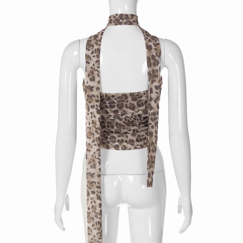 Increase quantity for Leopard print ruched mesh 2 piece tube top