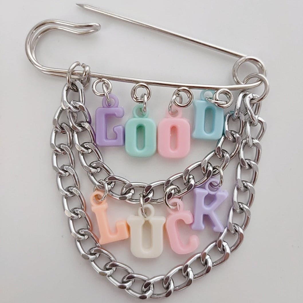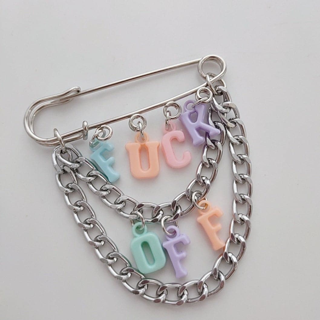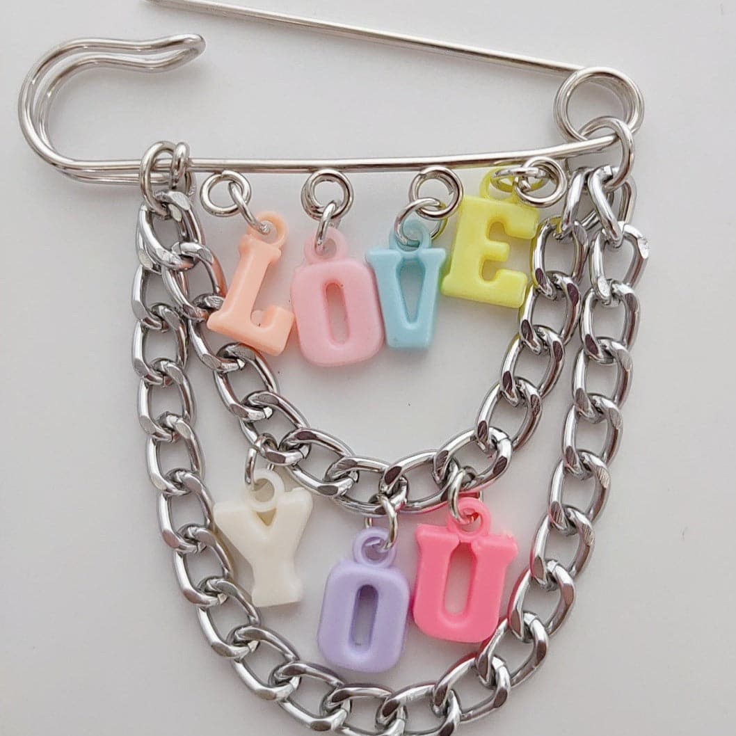 Letter multicolor clay pendant pin