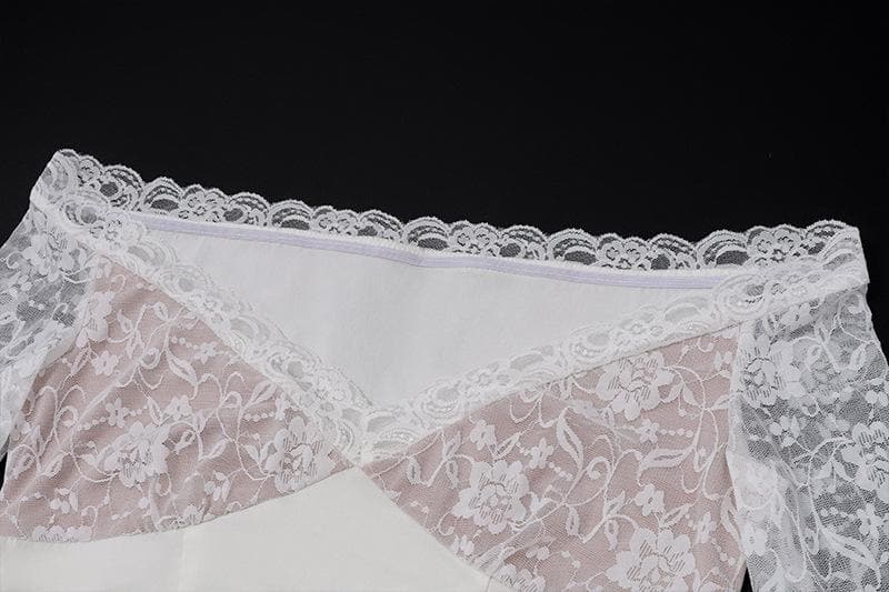 Decrease quantity for Long flared sleeve lace patchwork pleated ruched zip-up mini skirt set