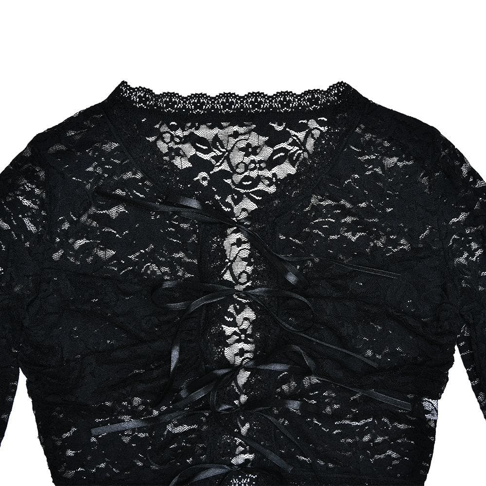 Decrease quantity for Long flared sleeve lace see through maxi skirt set