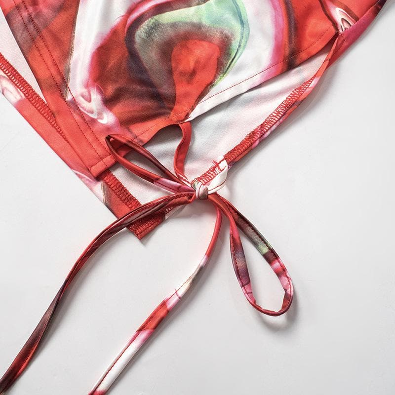 Decrease quantity for Long flared sleeve off shoulder print mini skirt set