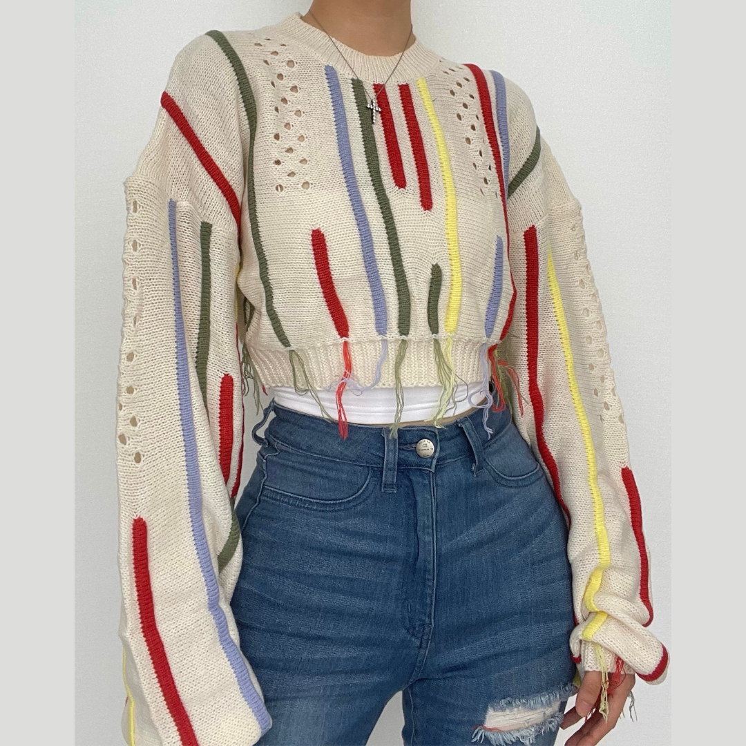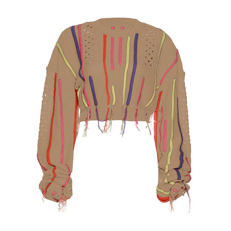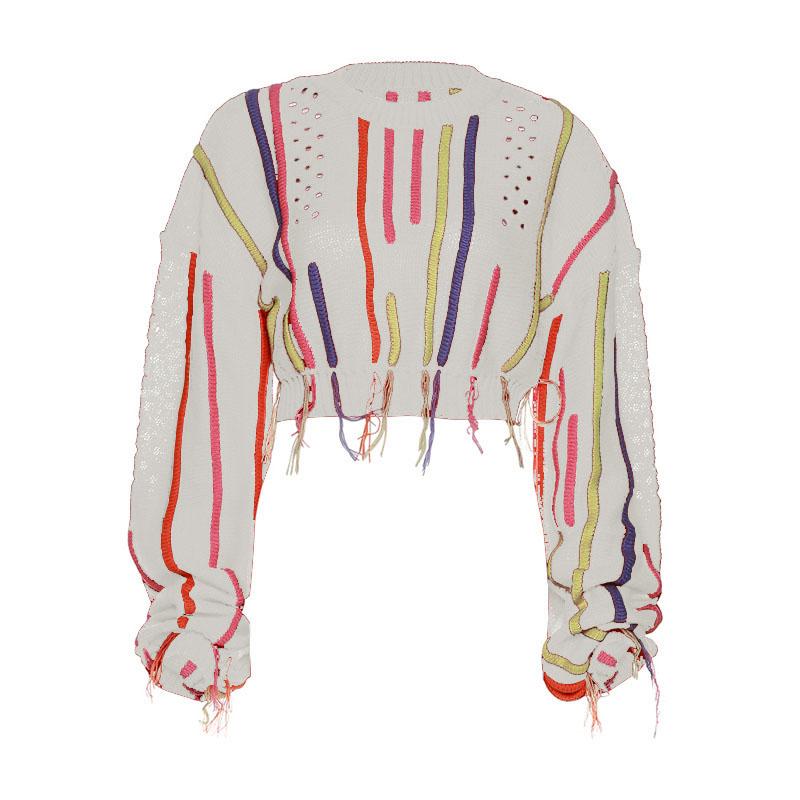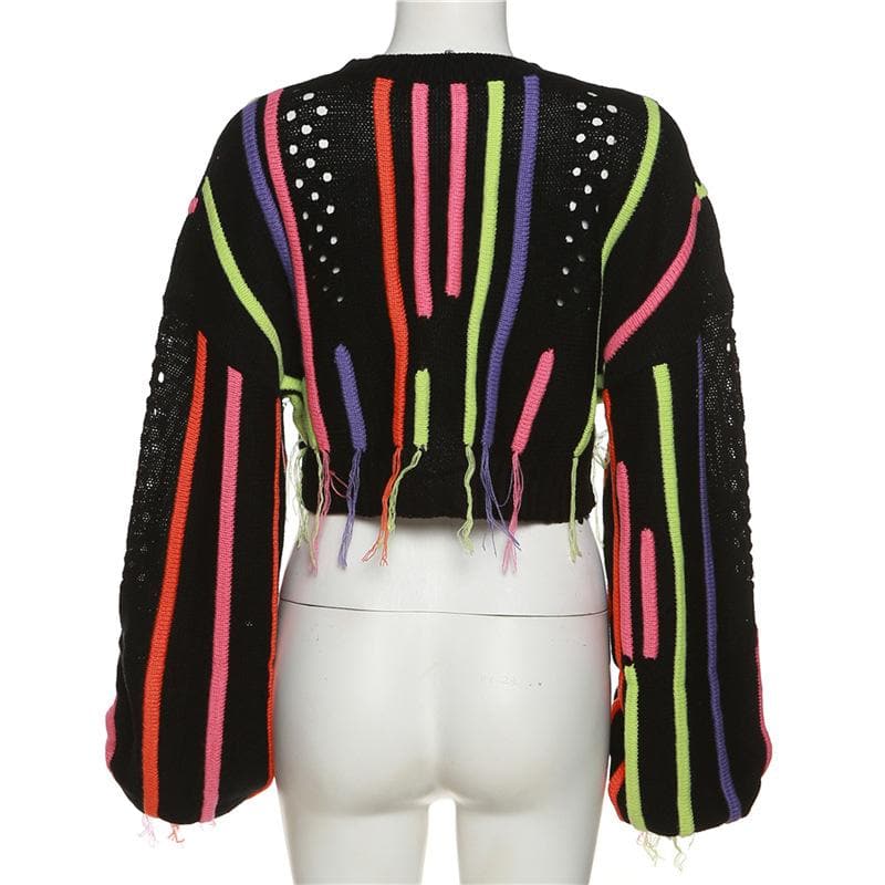 Decrease quantity for Long sleeve contrast knitted round neck sweater top