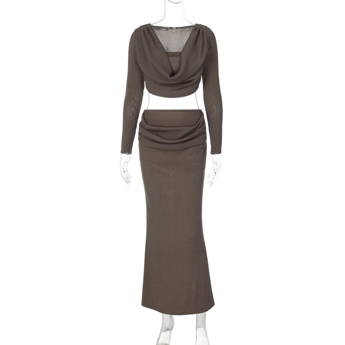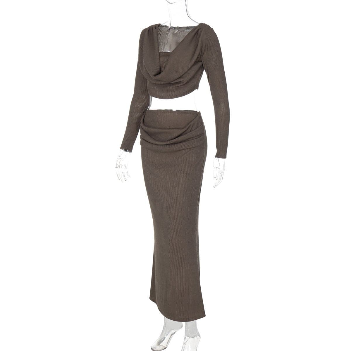 Long sleeve cowl neck ribbed maxi skirt set