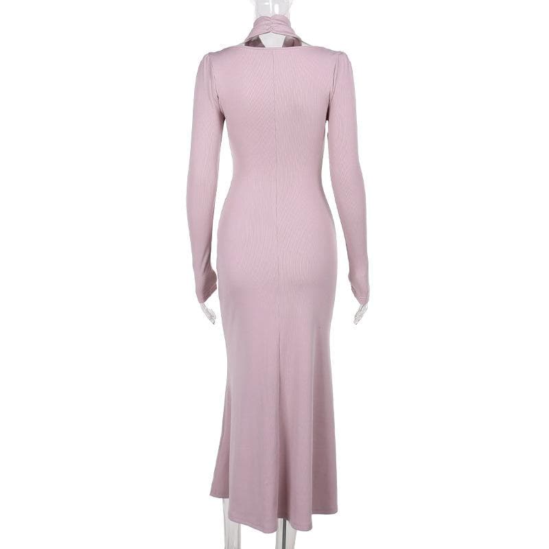 Decrease quantity for Long sleeve halter faux pearl applique ruched midi dress