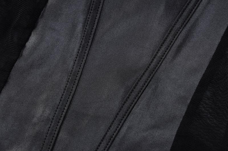 Decrease quantity for Long sleeve high neck mesh patchwork gloves stitch jumpsuit