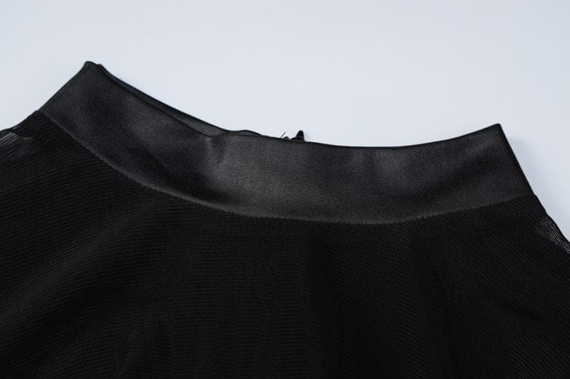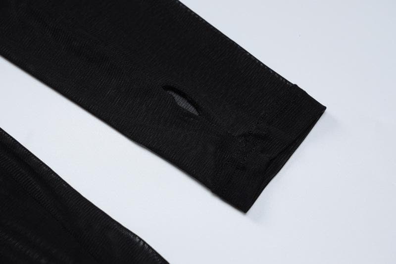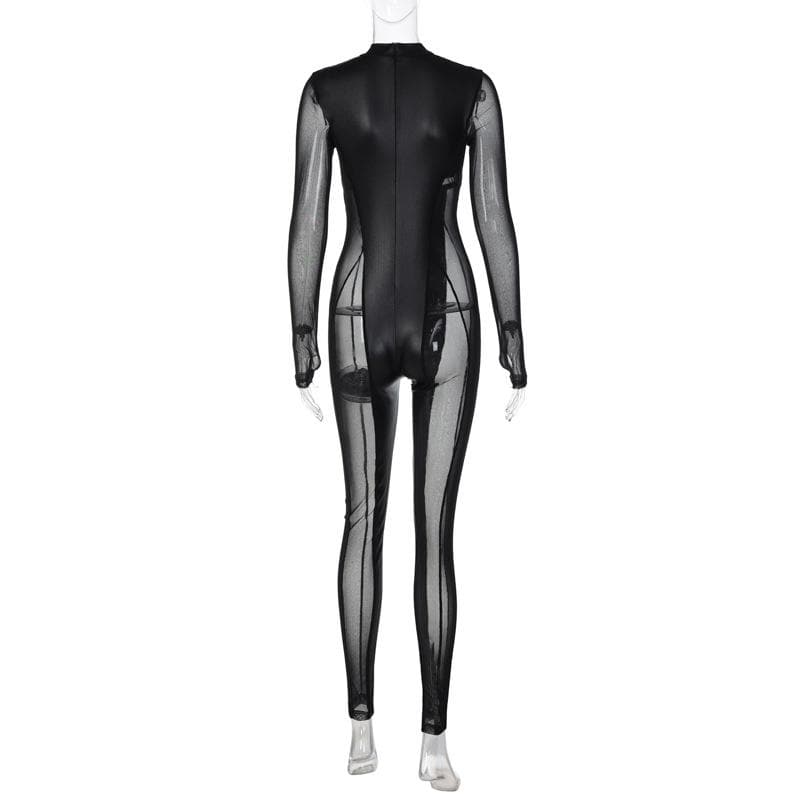 Long sleeve high neck mesh patchwork gloves stitch jumpsuit