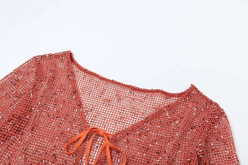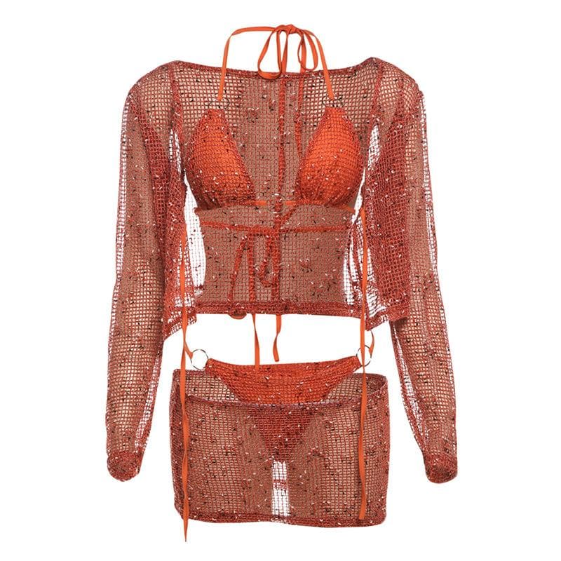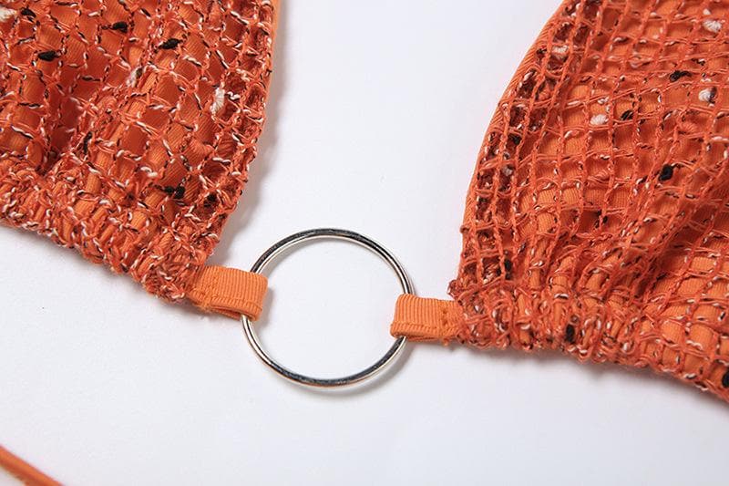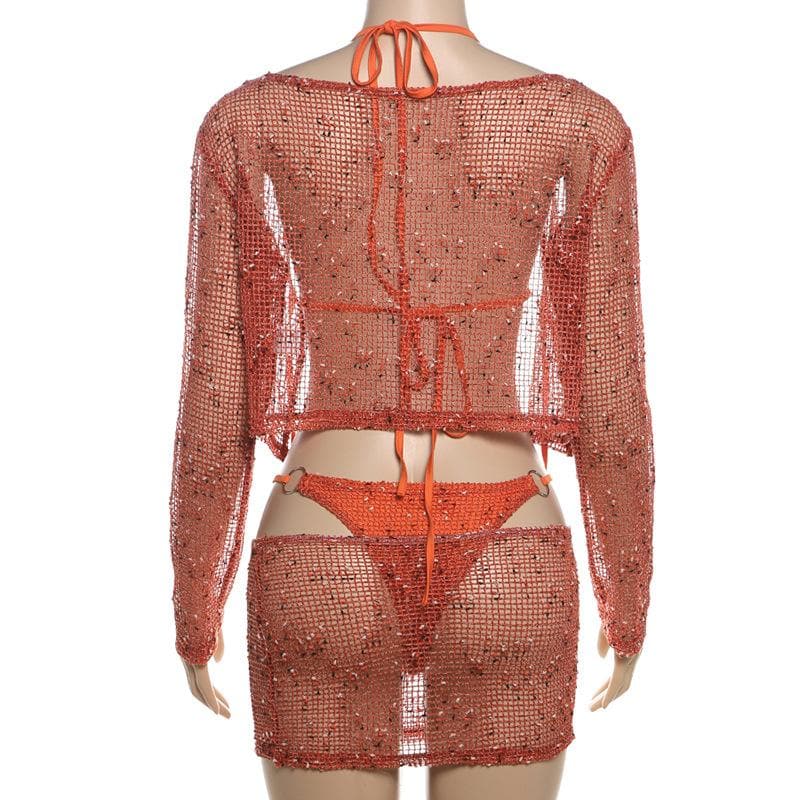 Decrease quantity for Long sleeve hollow out o ring halter 4 piece mini skirt set