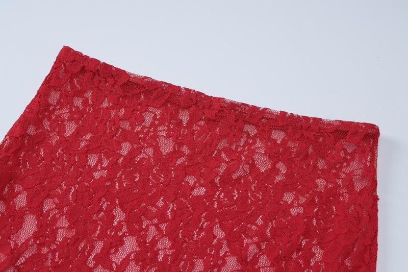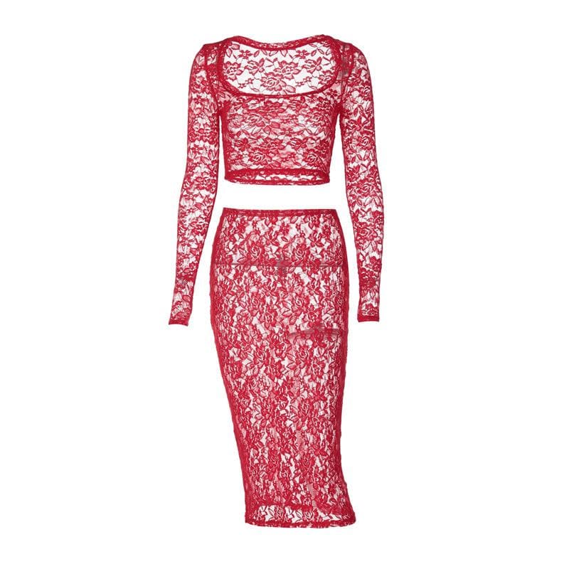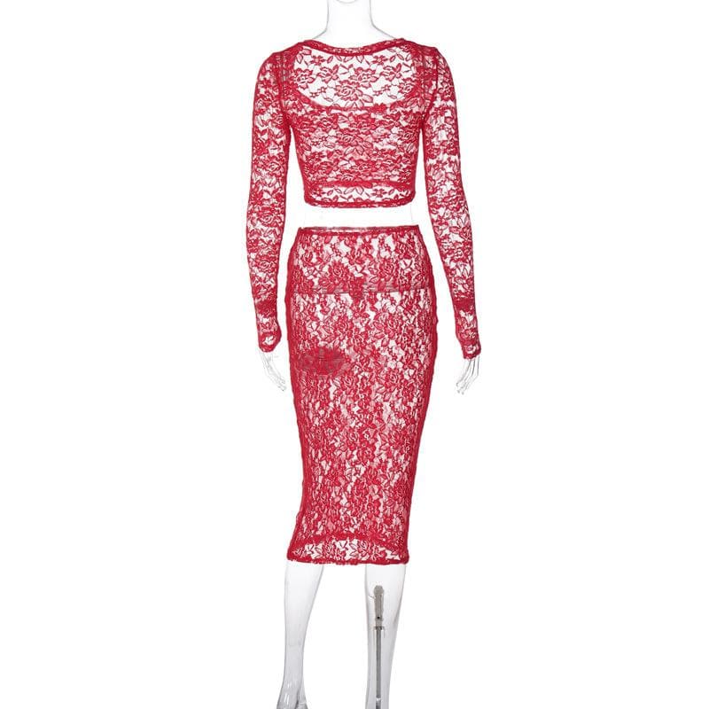 Decrease quantity for Long sleeve lace see through solid midi skirt set