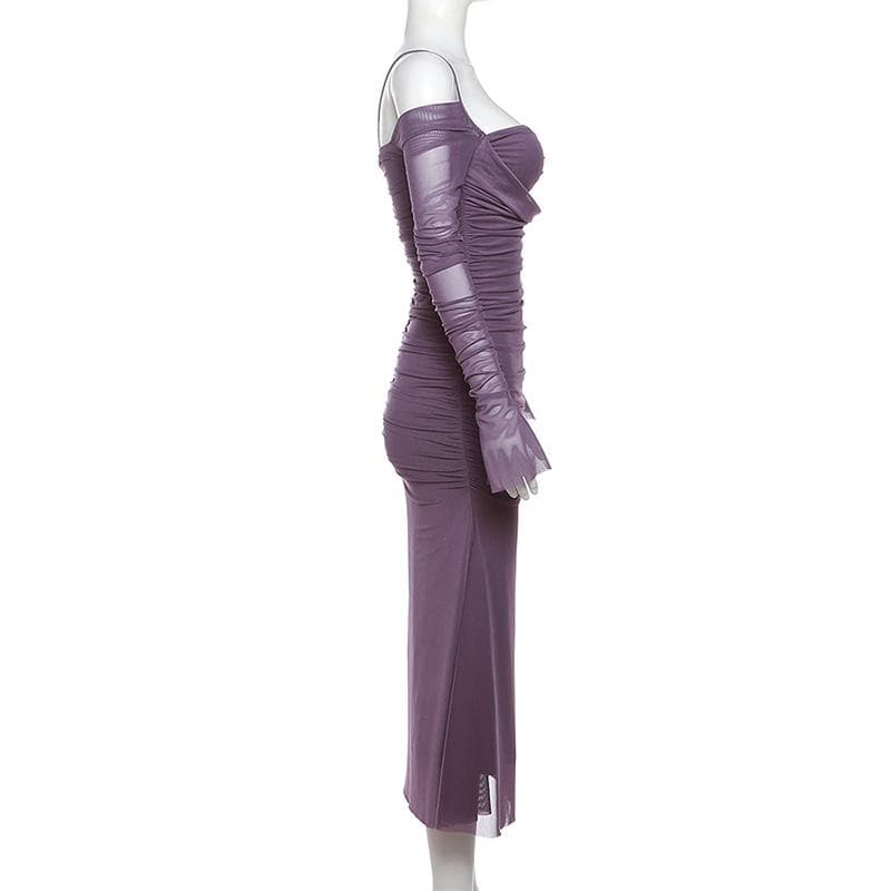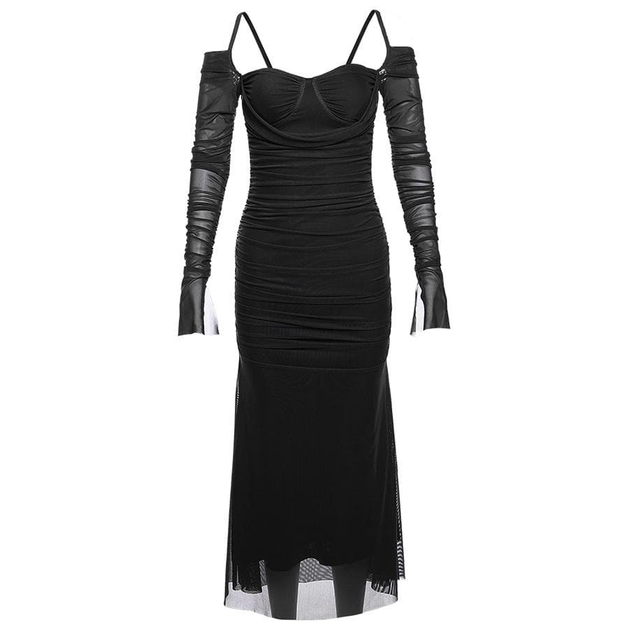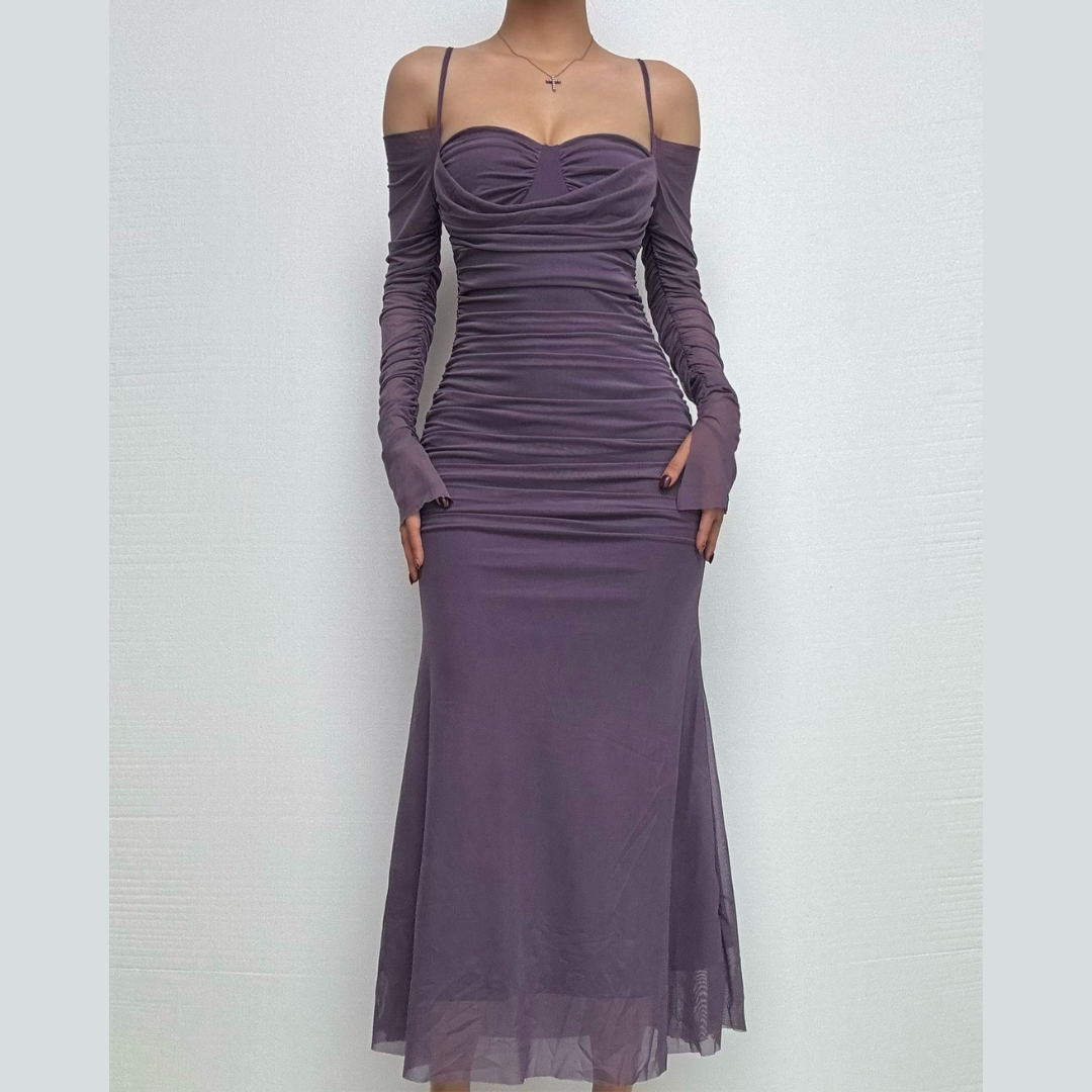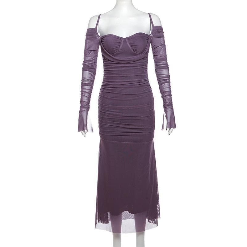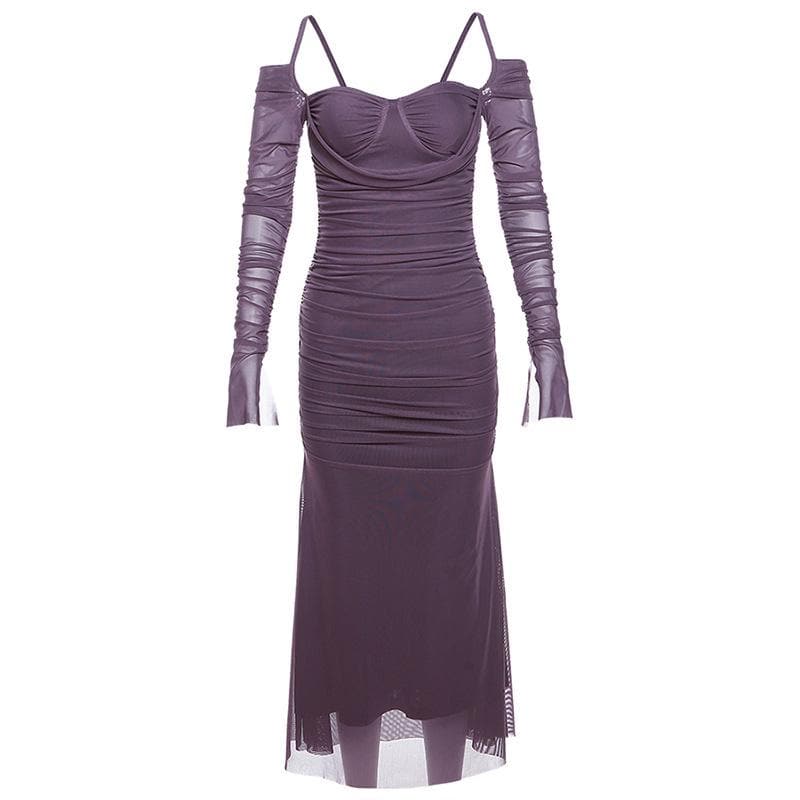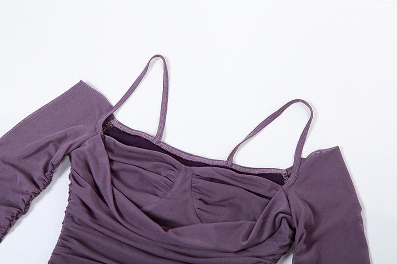 Decrease quantity for Long sleeve mesh ruched off shoulder cami midi dress