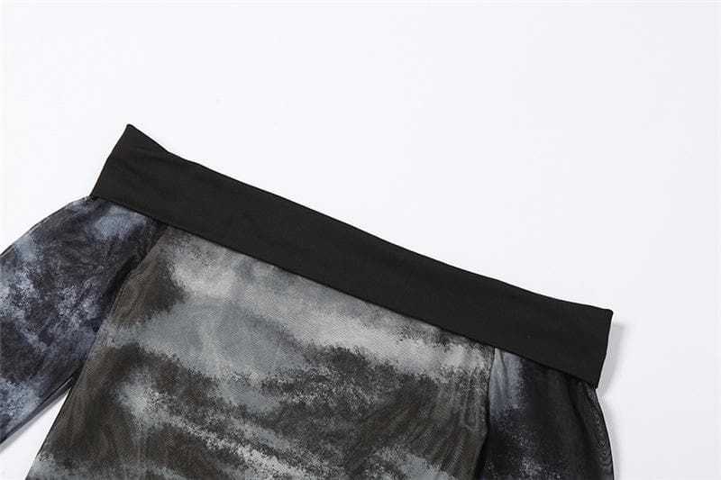 Decrease quantity for Long sleeve off shoulder contrast tie dye drawstring mini skirt set