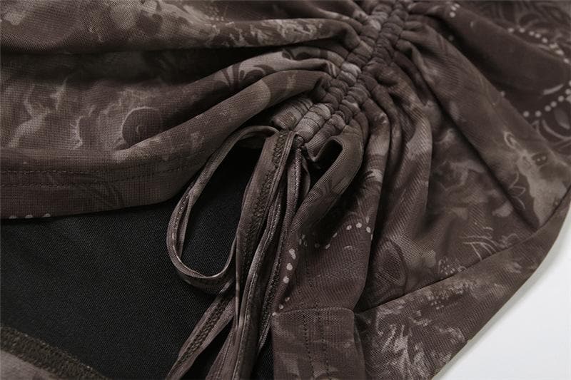 Serena Blue Floral Ruched Mesh Mini Dress