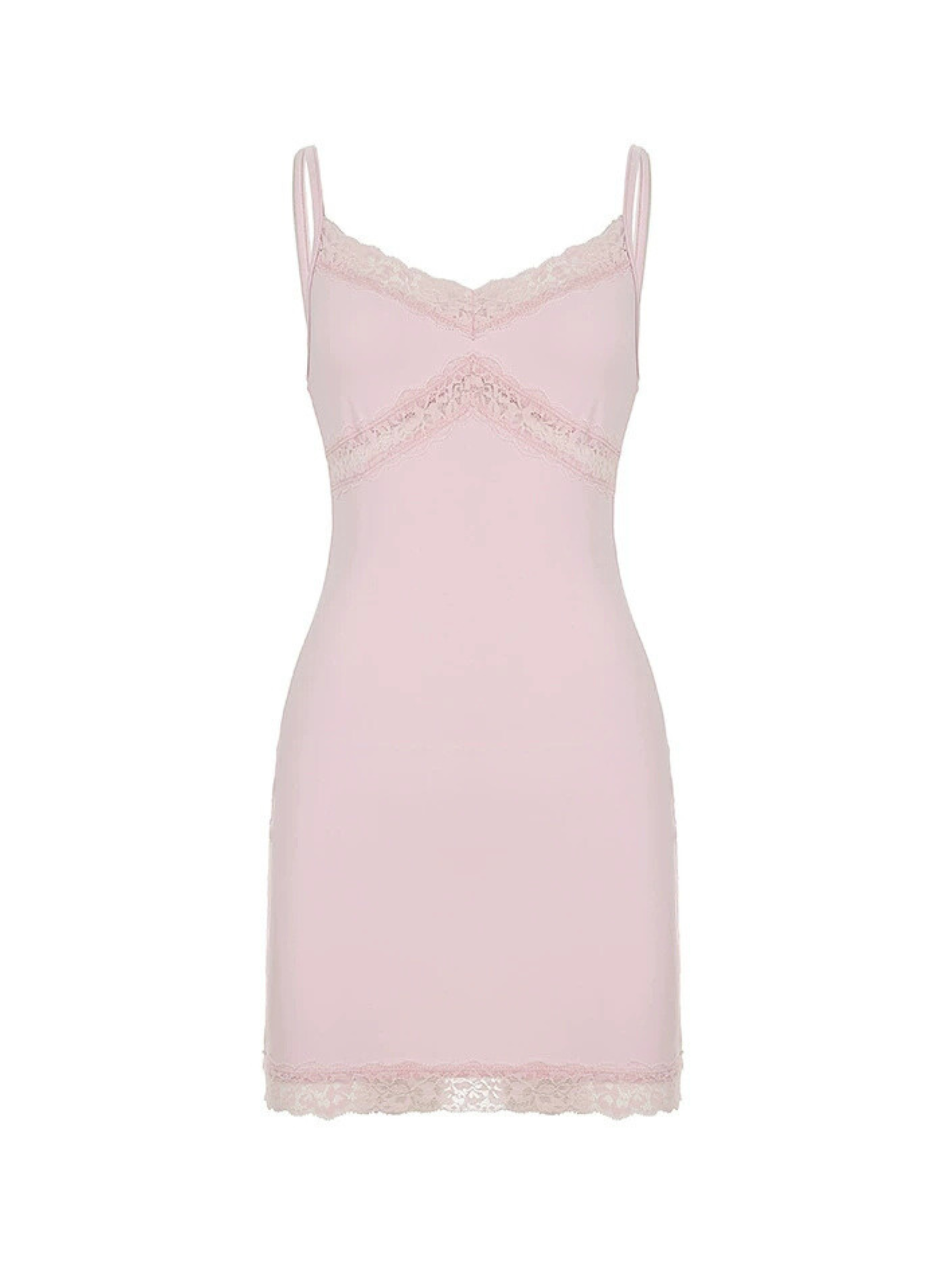Maya Lace Trim Mini Dress brings soft femininity and flirty charm together in one dreamy piece. Crafted in a delicate baby pink shade. this figure-hugging mini dress features thin spaghetti straps and beautiful lace detailing along the neckline. underbust. and hem. Its bodycon silhouette flatters your shape while keeping things sweet and sensual—perfect for romantic evenings or a soft. girly daytime look.
