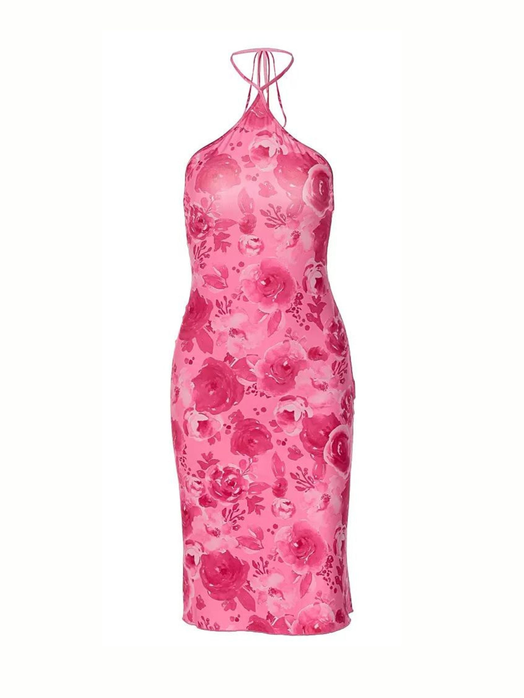 Add a touch of romance to your wardrobe with the Rhea Floral Midi Dress in Pink. The halterneck and sleeveless design create a slim. bodycon fit. while the backless detail adds a flirty touch. Perfect for the summer season. this dress is a must-have from Vivuki Summer's in Bloom Collection.