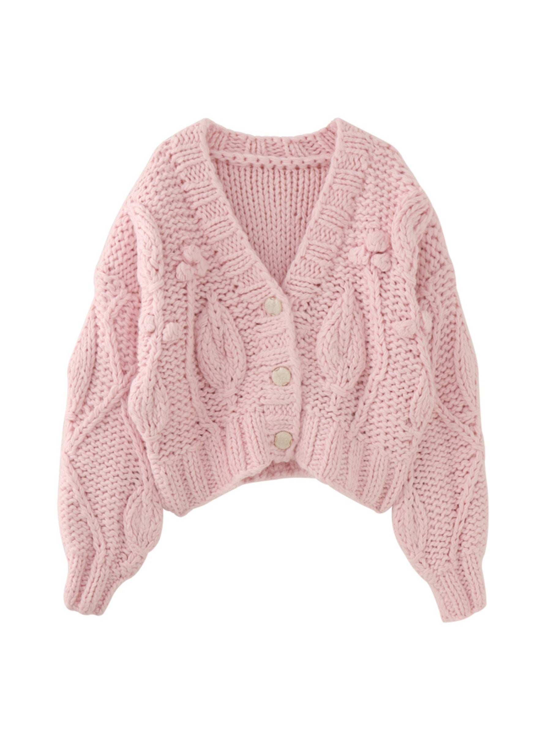 Stay cozy and cute with the Rylea Chunky Knit Cardigan. Featuring an intricate cable knit design and oversized sleeves. this cardigan adds a touch of warmth and charm to your look. The soft pink hue brings a sweet. feminine vibe. making it perfect for layering over casual outfits. Finished with pearl buttons for a polished touch. it's the ideal statement piece for colder days.