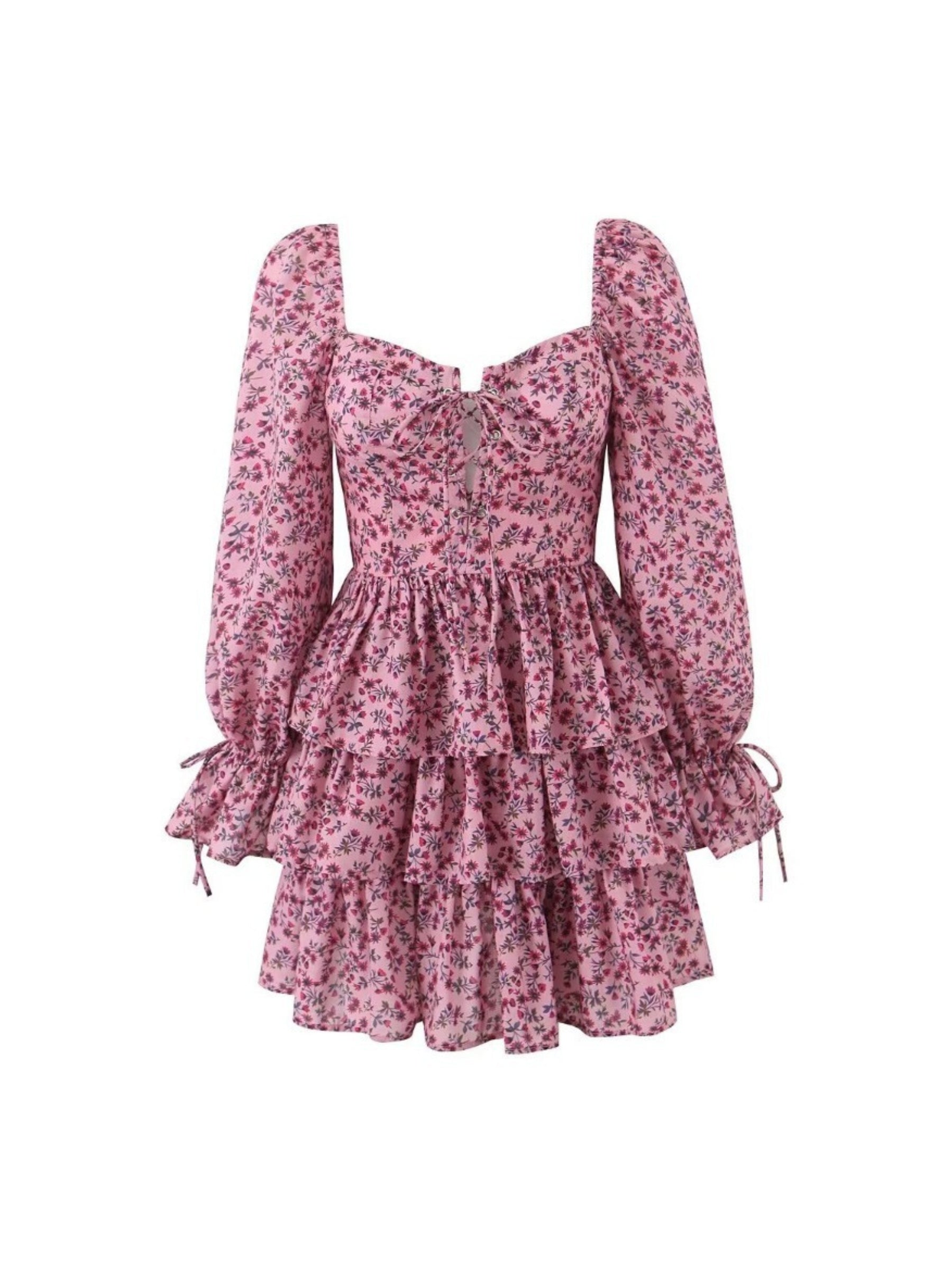 Get ready to be the life of the party in our Salma Floral Mini Dress! With its playful ruffle cake skirt and puff-sleeves. this dress is perfect for dancing the night away. The long sleeves and high waist provide comfort and style. while the lace-up detailing adds a touch of flirty fun. Part of our Vivuki Mini Dresses Collection.