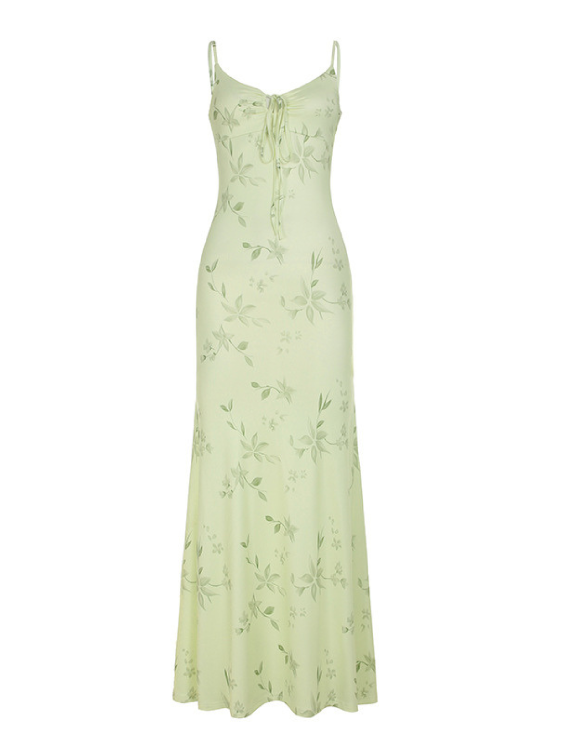 Here's a romantic and breezy dress that perfectly captures the essence of a sun-drenched getaway. With its soft pastel green tone and delicate floral print. this piece radiates effortless elegance. The flattering silhouette hugs in all the right places. while the ruched bust detail adds a sweet. feminine charm. Whether you're heading to a garden party. a sunset dinner. or simply living your best summer life—this is the dress you'll keep reaching for.