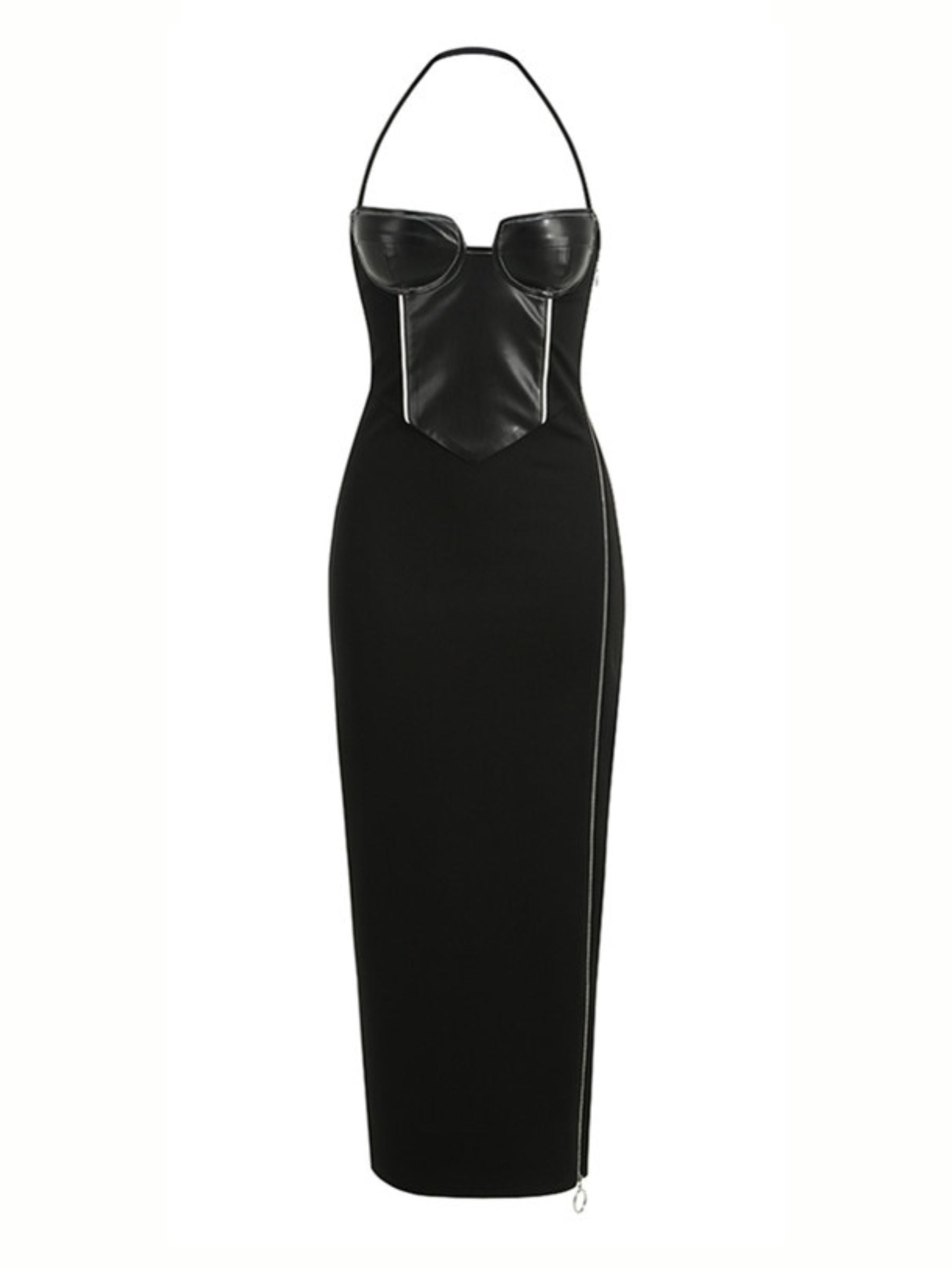 This chic faux leather midi dress features a halterneck design and a slim fit for an elegant look. Perfect for any party or cocktail event. this dress from the Vivuki collection will help you stand out and embrace your inner good girl.