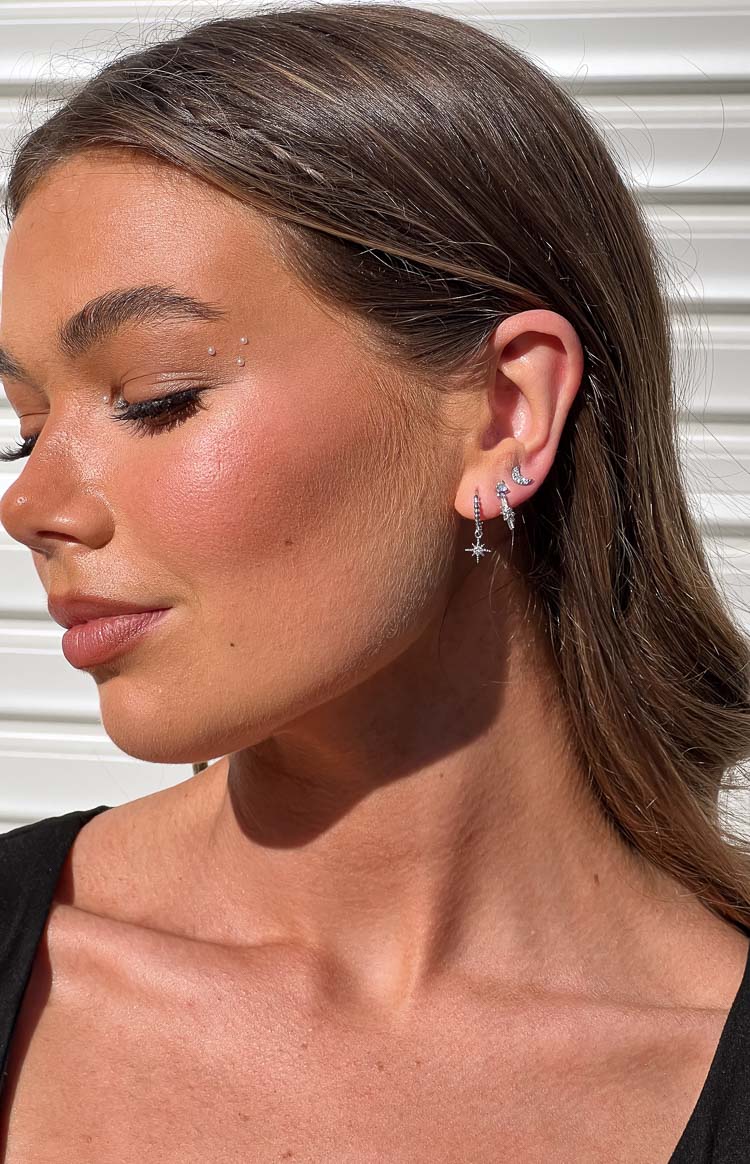 Add some sparkle to any outfit with our Starry Nights Silver Earring Pack! Perfect for mixing and matching. each piece in this set is uniquely designed for a cohesive yet completely customisable earring stack! Add these gorgeous star themed pieces to any outfit to tie your look together.