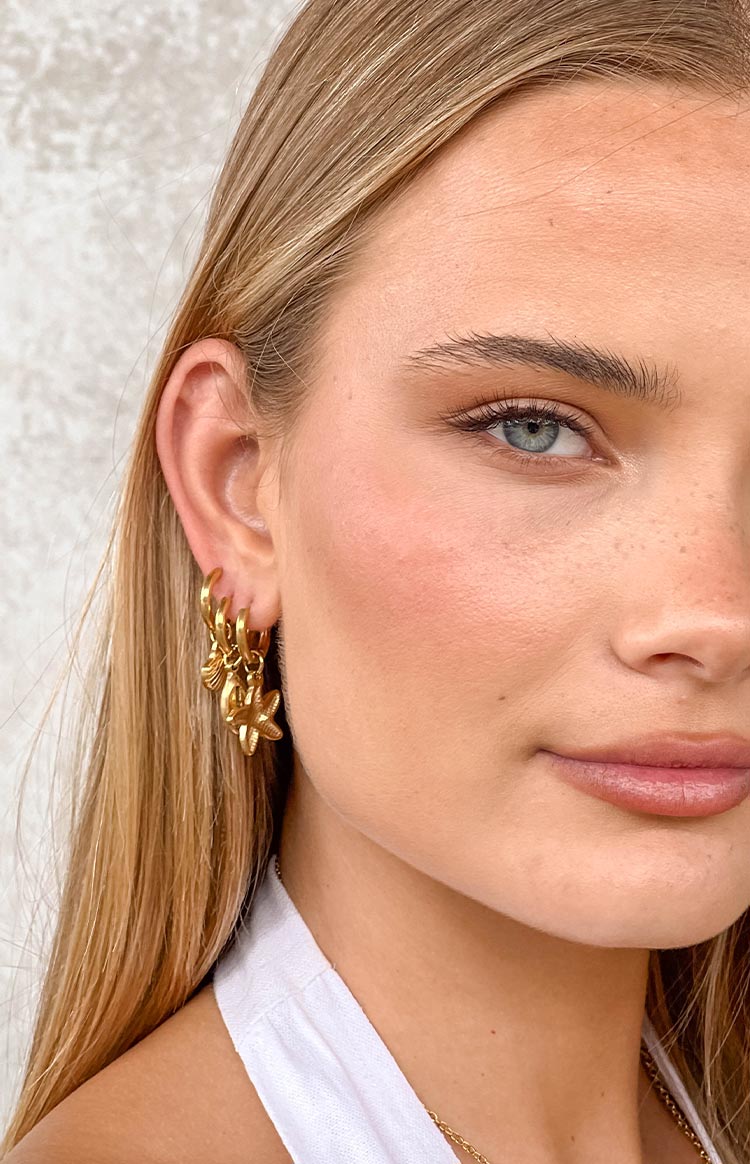 Radiate summer energy with our Tahls Gold Sea Shell Earring Set 3 Pack! The gorgeous shell and starfish pendants and hoop styles makes for an adorably elegant look! Pair with our Ariel Gold Shell Necklace and your favourite summer dress to make the perfect summer time set!