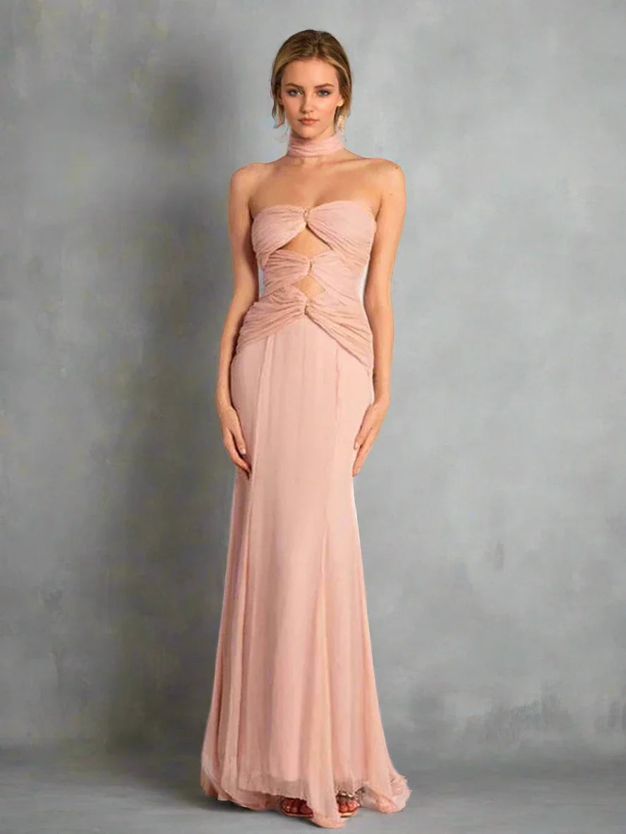 Expertly crafted for a flawless fit. this Pink Twisted Tube Scarf Mermaid Flare Midi Dress is a must-have addition to your wardrobe. Sleek and elegant. the twisted tube design accentuates your curves while the mermaid flare adds a touch of drama. Perfect for any occasion. this dress is sure to make a statement.