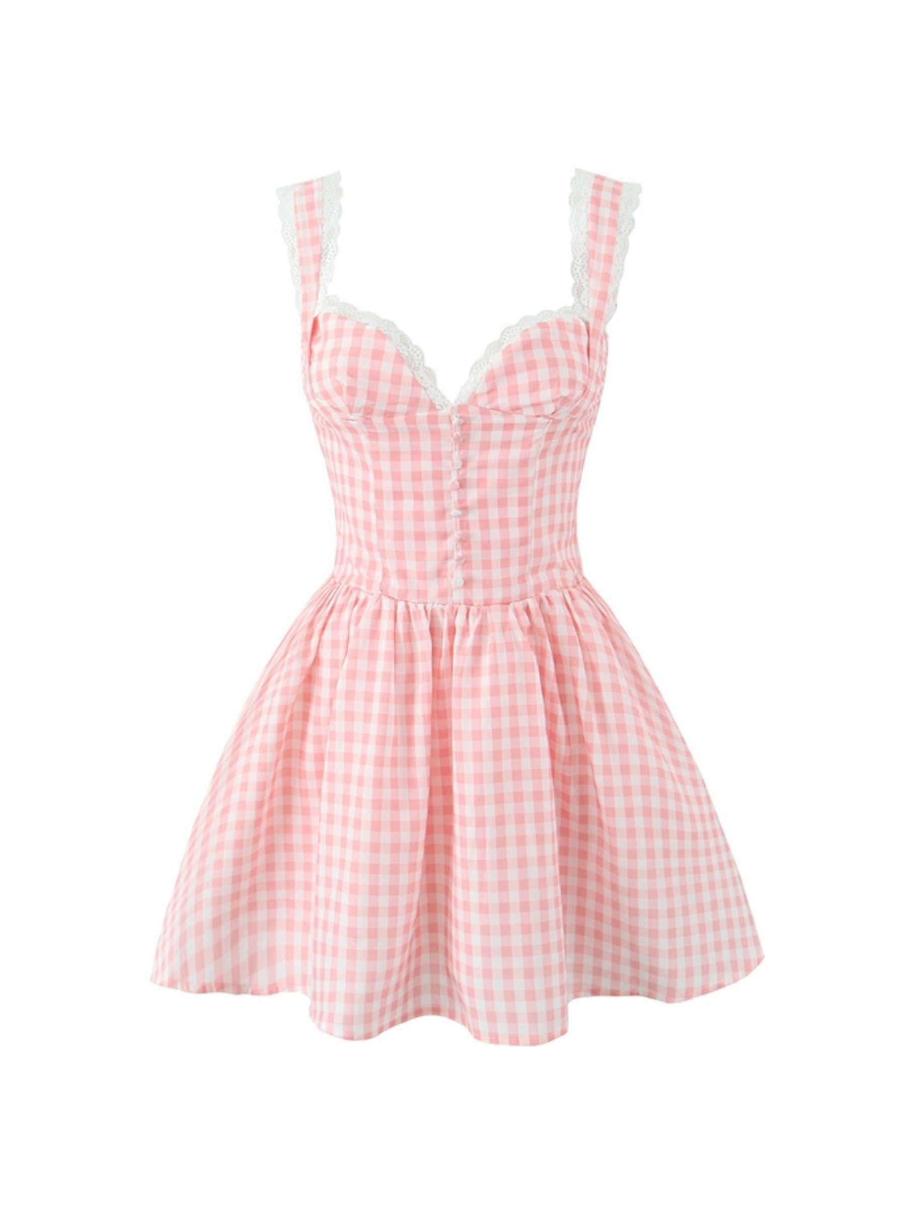 Get ready to turn heads in our Wendy Mini Dress! With its sleeveless design and wide straps. this dress is perfect for those hot summer days. The lace detailing adds a touch of elegance. while the A-line gown skirt and high waist will give you a flattering silhouette. Embrace your inner French retro style with the Wendy Dress from our Vivuki Summer in Bloom Collection.